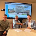 Op de foto hieronder zetten Ron Vloet en Roy Burgers (Radboudumc) en Hubert-Jan van den Brink (Giesbers) hun handtekening onder de samenwerking. Op de visualisaties zie je hoe het vernieuwde gebouw eruit komt te zien. Met een verfriste voorgevel, en een vernieuwde achtergevel en patio met slimme indeling en aandacht voor comfort en duurzaamheid.