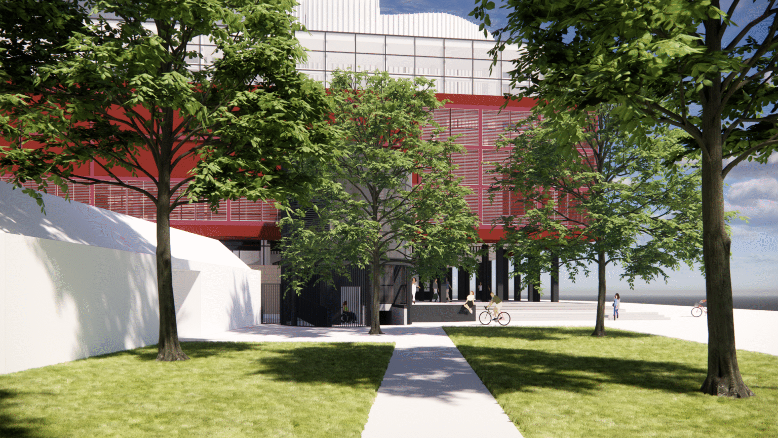 We beginnen met de sloop van de huidige entree van de Concertzaal en de ingang van de bestaande fietsenstalling. Deze stap is essentieel om ruimte te maken voor de nieuwe, moderne entree. De nieuwe entree wordt opgetrokken uit een staalconstructie en komt naast de bestaande constructie te liggen, dit in tegenstelling tot de huidige constructie die onder het gebouw zit. Om dit te realiseren zullen we verstevigingen aan de bestaande kolommen aanbrengen en een volledig nieuwe staalconstructie opzetten. Daarnaast zal de trap naar de fietskelder worden aangepast; de huidige hoek in de trap wordt rechtgetrokken voor een betere toegankelijkheid.